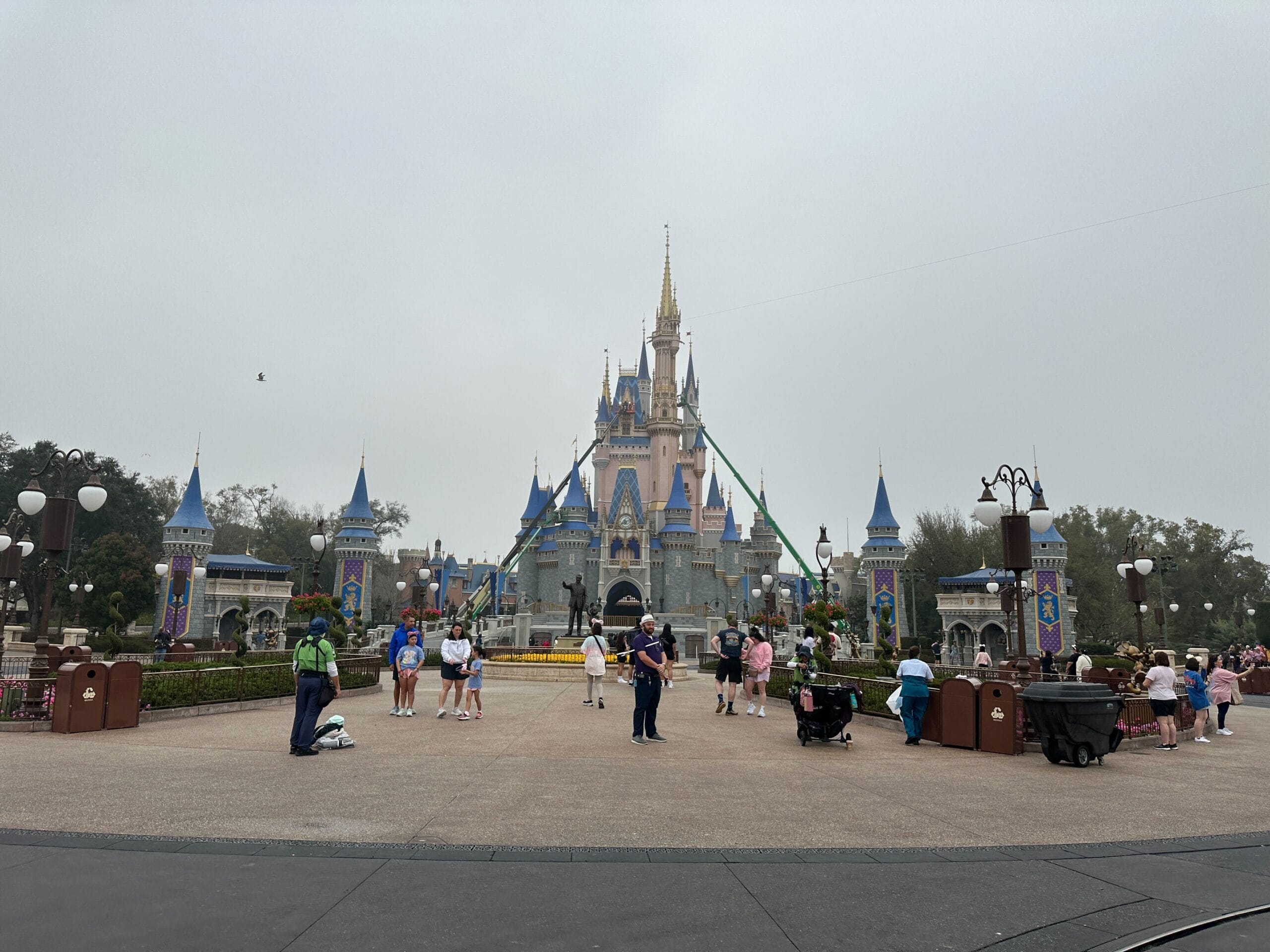 Lifts Up in Front of Guests at Cinderella Castle for Repainting Project at Magic Kingdom